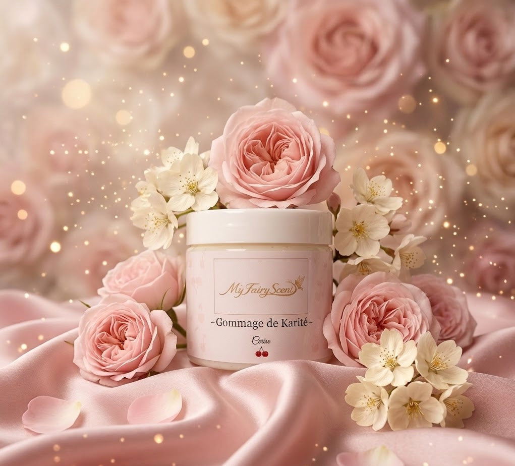 Exfolier votre peau avec notre gommage parfumé à base de beurre de Karité très hydratant.